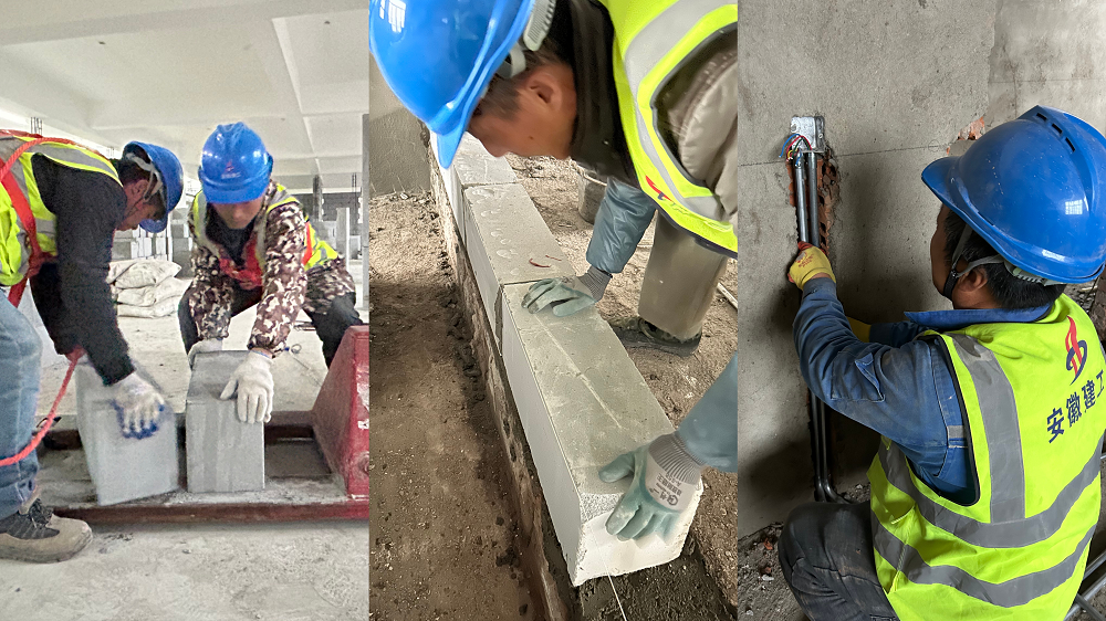 圖為:安徽理工大學(xué)(合肥高等研究院)維修改造項目(二期)室內砌筑材料搬運、新增隔墻砌筑及水電管線(xiàn)預埋施工