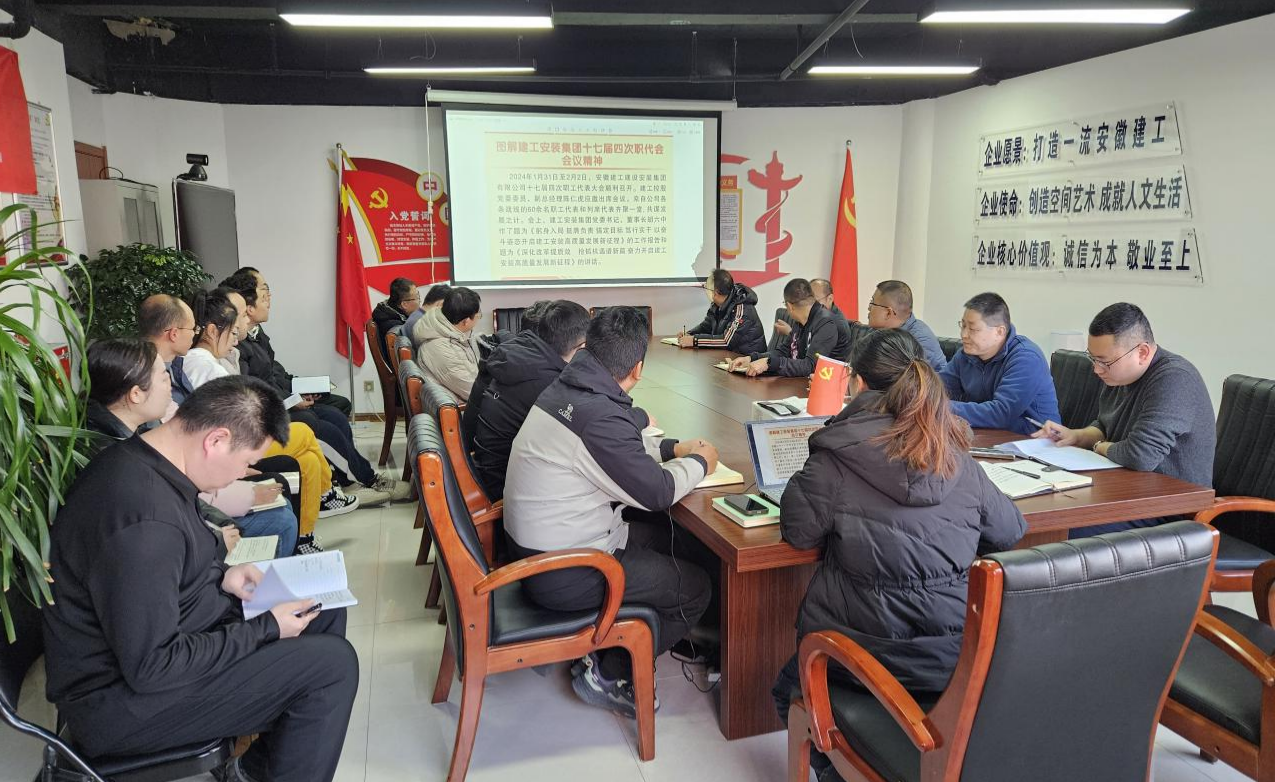會(huì )議傳達學(xué)習了建工控股黨委書(shū)記、董事長(cháng)楊善斌作的題為《改革創(chuàng )新?lián)斪鳛閵^力推進(jìn)安徽建工集團轉型發(fā)展高質(zhì)量發(fā)展大發(fā)展》的總結講話(huà)精神、建工控股黨委委員、總會(huì )計師王淑德作的集團《工作報告》精神,以及建工安裝黨委書(shū)記、董事長(cháng)胡六中作的題為《躬身入局挺膺負責錨定目標篤行實(shí)干以?shī)^斗姿態(tài)開(kāi)啟建工安裝高質(zhì)量發(fā)展新征程》的工作報告和題為《深化改革提質(zhì)效搶抓機遇譜新篇奮力開(kāi)啟建工安裝高質(zhì)量發(fā)展新征程》的講話(huà)精神。通過(guò)宣貫學(xué)習,大家對集團、公司2023年取得的成績(jì)以及2024年工作思路、部署安排和發(fā)展形勢都有了深刻的理解和認識,進(jìn)一步提振了信心,鼓舞了士氣。