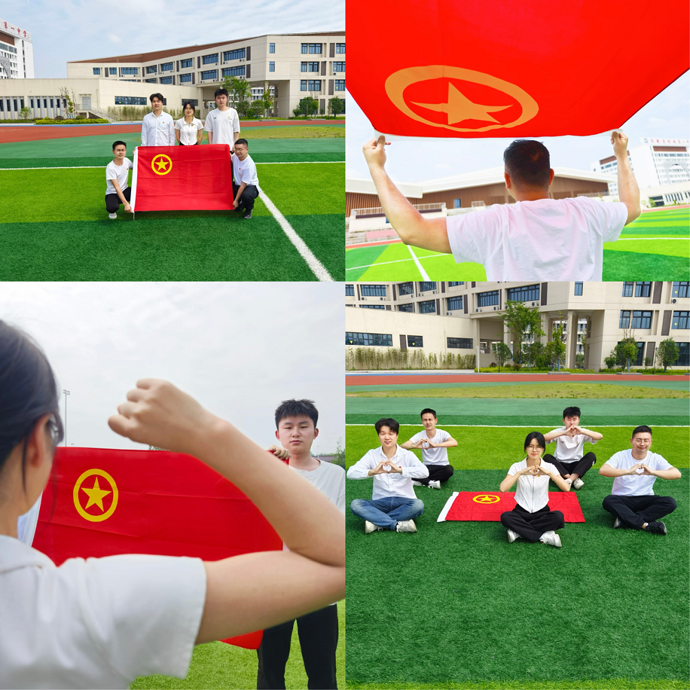 活動(dòng)中,分公司團員青年們通過(guò)精心設計特色的創(chuàng )意合影與團旗、團徽同框打卡,現場(chǎng)用手擺出“五角星”造型、在團旗下宣誓、將團旗框在“愛(ài)心”里等定格記錄美好瞬間。分公司的團員青年們用年輕的姿態(tài)、自信的笑容熱情參與,用獨有的表達方式向青春致敬。