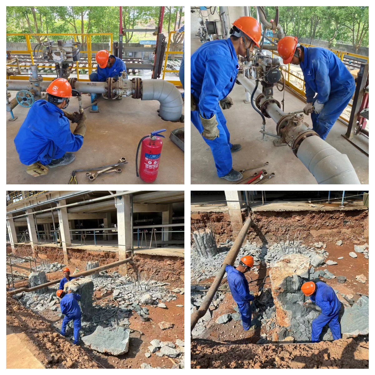 圖為現場(chǎng)管道拆除和挖孔樁施工