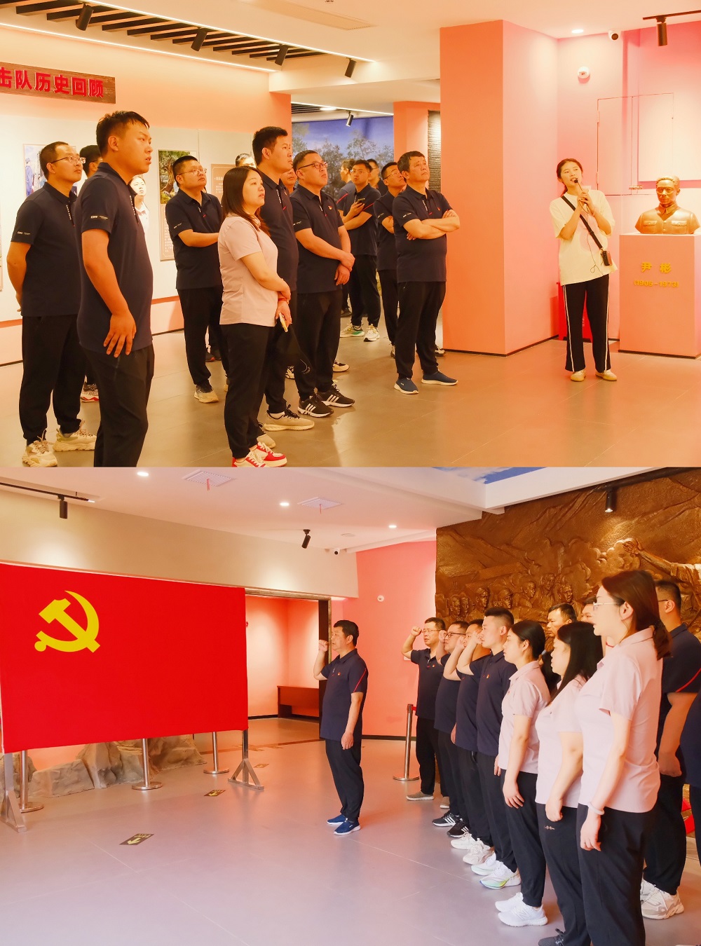 在紀念館內,通過(guò)參觀(guān)展區內陳列的各類(lèi)圖片、文獻以及實(shí)物等資料,大家追尋紅色足跡,深入了解革命先輩浴血奮戰的革命歷史和革命精神,深情追憶老一輩共產(chǎn)黨人的英勇事跡,深切緬懷流血犧牲的革命先烈。參觀(guān)學(xué)習結束后,全體黨員干部在紀念館前重溫了入黨誓詞。