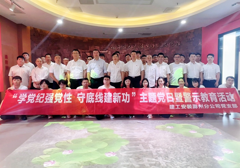 為扎實(shí)推進(jìn)黨紀學(xué)習教育走深走實(shí),進(jìn)一步增強分公司黨員干部黨紀觀(guān)念和廉潔意識,培育分公司“清廉文化”干事創(chuàng )業(yè)氛圍,5月16日下午,建工安裝滁州分公司黨支部組織分公司領(lǐng)導班子成員、機關(guān)部門(mén)負責人、項目經(jīng)理、全體黨員和團員青年共40余人,赴瑤海區人民法院廉政文化館開(kāi)展“學(xué)黨紀強黨性、守底線(xiàn)建新功”主題黨日暨警示教育活動(dòng)。