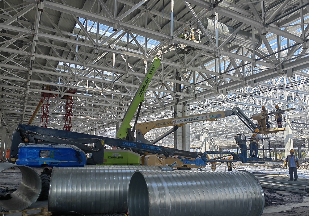 項目部全體管理人員緊抓施工節點(diǎn),緊跟土建、鋼結構單位施工進(jìn)度,全力統籌人、材、機合理高效入場(chǎng),根據現場(chǎng)施工情況逐步優(yōu)化各專(zhuān)業(yè)施工方案,全力推進(jìn)施工進(jìn)度。目前,車(chē)間一整體防雷接地已完成60%,QA辦公樓預埋已完成90%,隨著(zhù)土建單位工作面的交接,車(chē)間一5區、6區正在進(jìn)行成品支架、虹吸雨水管道、排水管、通風(fēng)管道等施工作業(yè)。