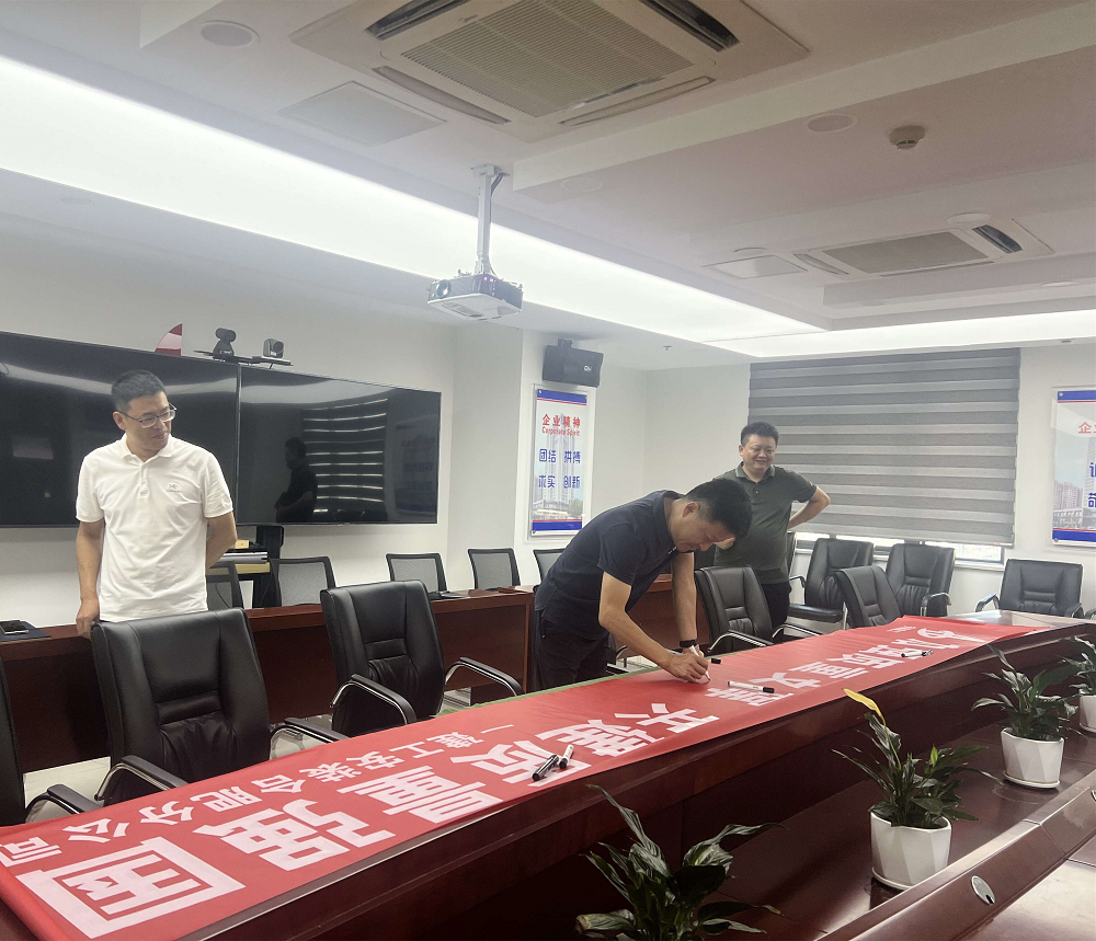 會(huì )后,舉行了主題橫幅簽名活動(dòng),大家莊重承諾嚴把質(zhì)量關(guān),持續提升項目質(zhì)量水平。