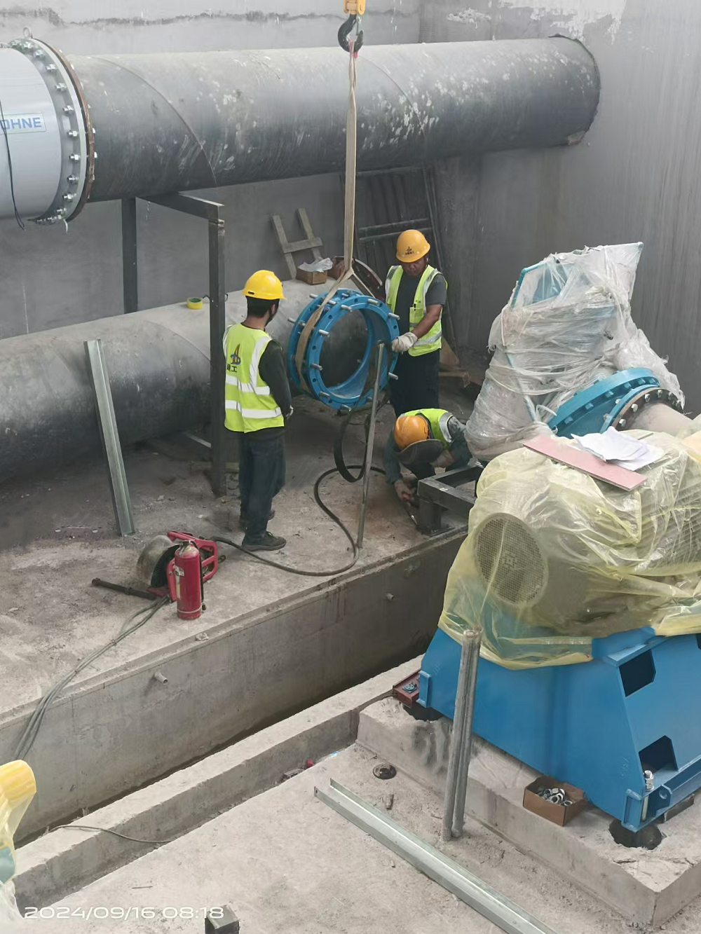 圖為安裝鼓風(fēng)機管道和閥門(mén)配件