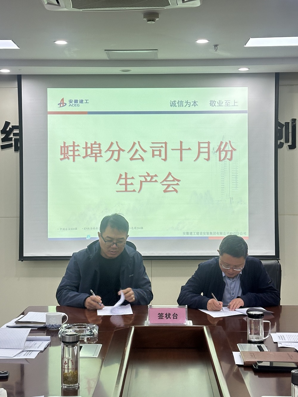 11月1日上午,蚌埠分公司組織召開(kāi)10月份生產(chǎn)經(jīng)營(yíng)調度會(huì ),分公司領(lǐng)導班子成員、所屬各項目部、機關(guān)各部門(mén)負責人及工程管理部全體員工參加會(huì )議,會(huì )議由分公司副經(jīng)理張斌主持。