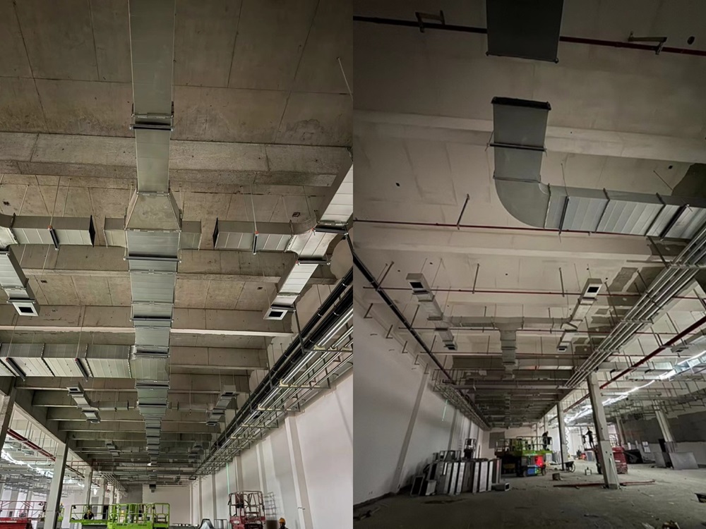 目前,焊裝車(chē)間循環(huán)水系統、消火栓系統、給排水系統、壓縮空氣已完成全部管道安裝任務(wù),進(jìn)入吹掃試驗階段。電氣系統進(jìn)入電纜放線(xiàn)和柜體箱體安裝階段,暖通系統進(jìn)入屋頂閣樓安裝階段。