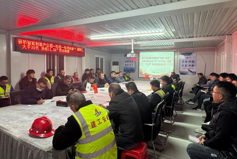 建工安裝滁州分公司合肥新橋智能制造 產(chǎn)業(yè)園一階段一標機電安裝項目部召開(kāi) “大干30天 決戰11.30”勞動(dòng)競賽 總結表彰大會(huì )