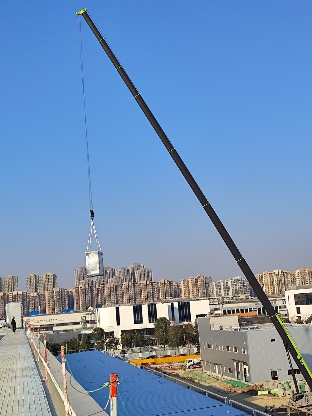 近日,車(chē)間一大型設備組合式空調陸續到貨,項目部有序開(kāi)展組合式空調現場(chǎng)吊裝工作。為了確保吊裝工作的順利進(jìn)行,項目部多次召開(kāi)方案實(shí)施推進(jìn)會(huì ),根據設備到場(chǎng)計劃,結合天氣情況、進(jìn)場(chǎng)路線(xiàn)、現場(chǎng)站位、部件起吊等反復優(yōu)化吊裝方案。梳理工作清單、制定工作任務(wù)、責任落實(shí)到人。同時(shí)采用現場(chǎng)拉設警戒區域、現場(chǎng)作業(yè)交底、試吊、全程看護作業(yè)等方式,保障現場(chǎng)吊裝作業(yè)安全進(jìn)行。