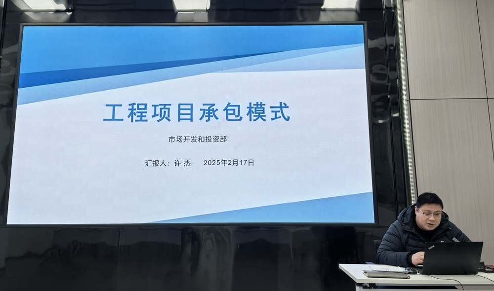 許杰聚焦工程項目承包模式,深入淺出地解讀了十種常見(jiàn)項目承包模式,并結合公司實(shí)際案例,從不同角度分析了每種模式的特點(diǎn)和適用場(chǎng)景,就集團市場(chǎng)開(kāi)發(fā)有關(guān)工作部署進(jìn)行宣貫。
