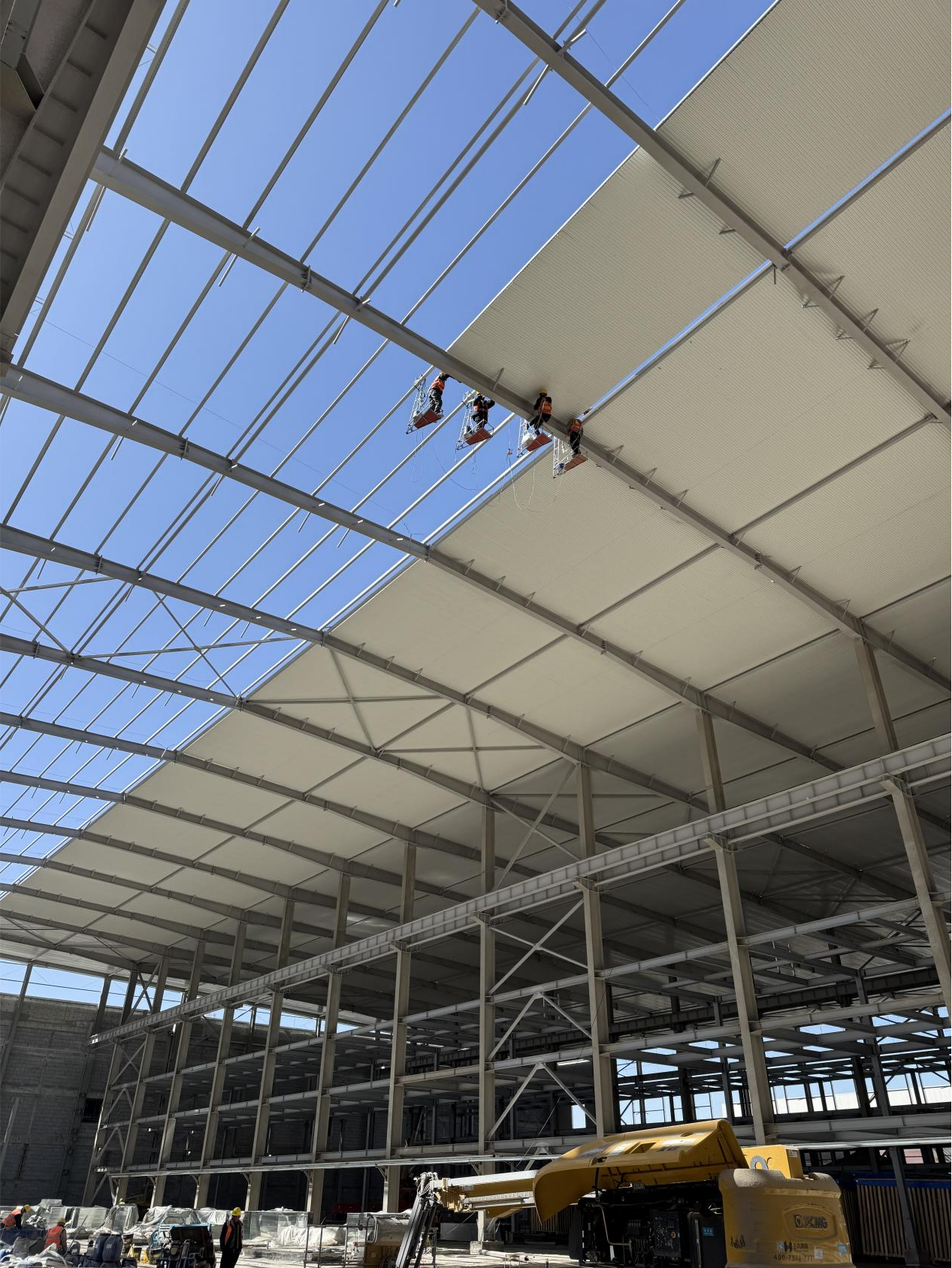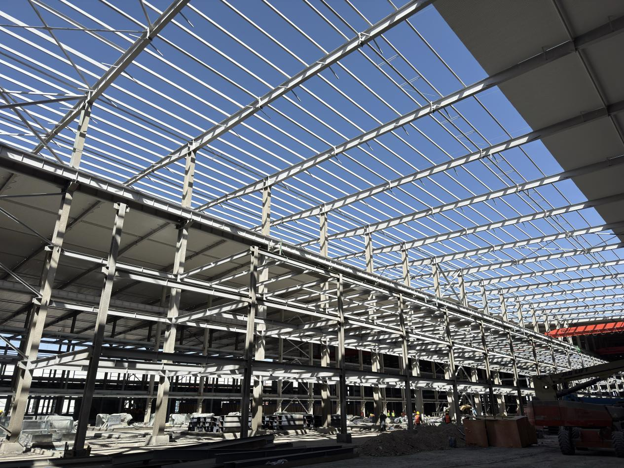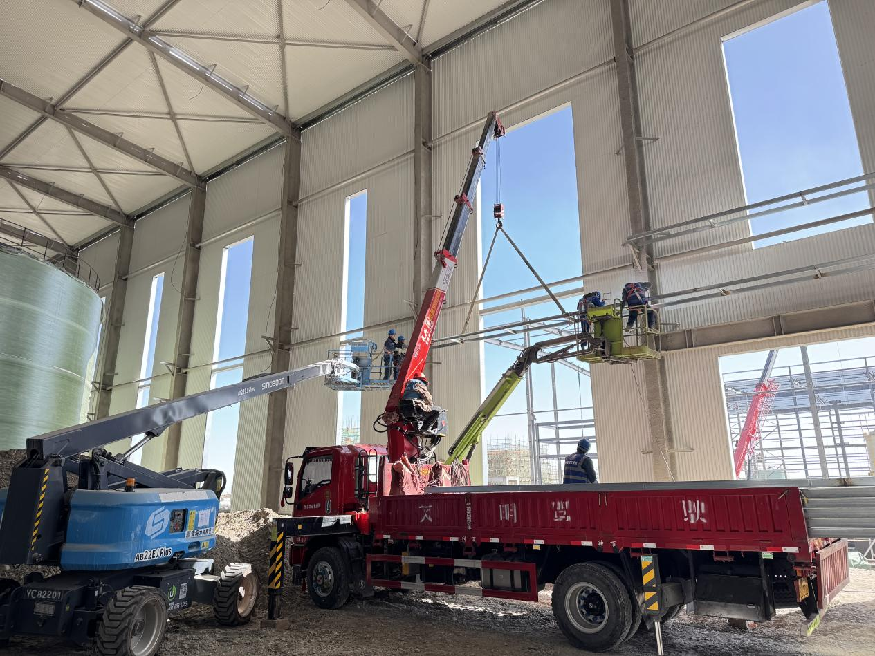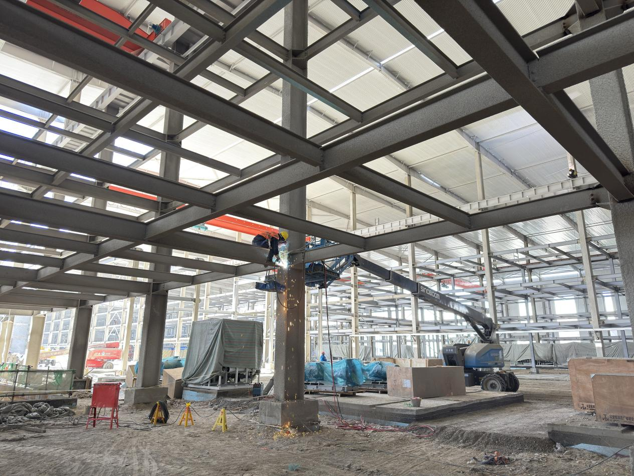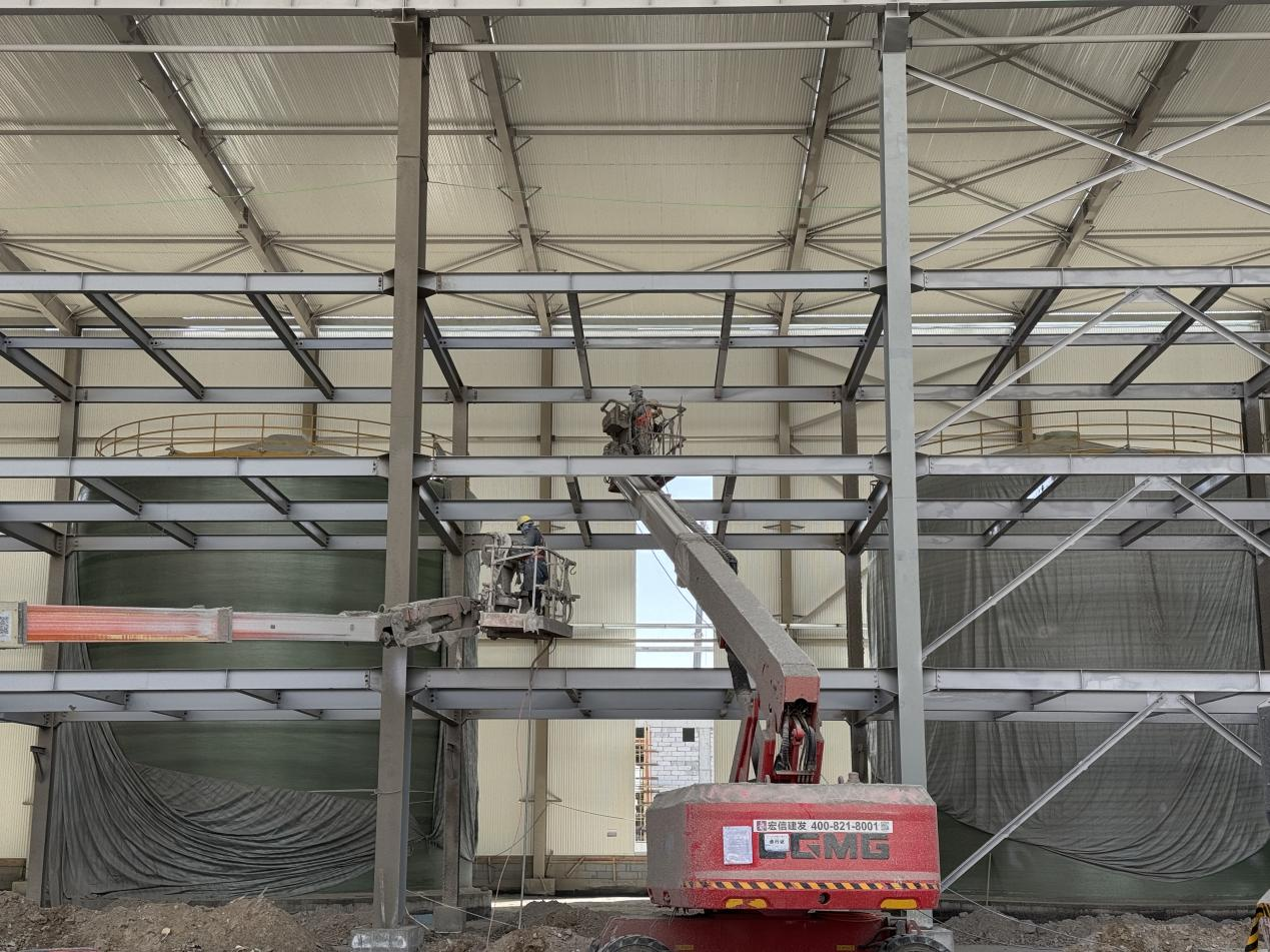 項目地處高海拔鹽湖區,缺氧且淡水匱乏,施工環(huán)境惡劣,資源保障困難。面對不利因素,項目團隊迎難而上,積極尋找解決方案,為項目順利推進(jìn)筑牢基礎。截至目前,項目已取得顯著(zhù)階段性成果,廠(chǎng)房主鋼構全部完成,管廊鋼結構完成約95%,防火涂料完成80%,屋面及墻面圍護結構完成約50%,配電房裝飾裝修工作有序進(jìn)行,各項任務(wù)按計劃穩步推進(jìn)。