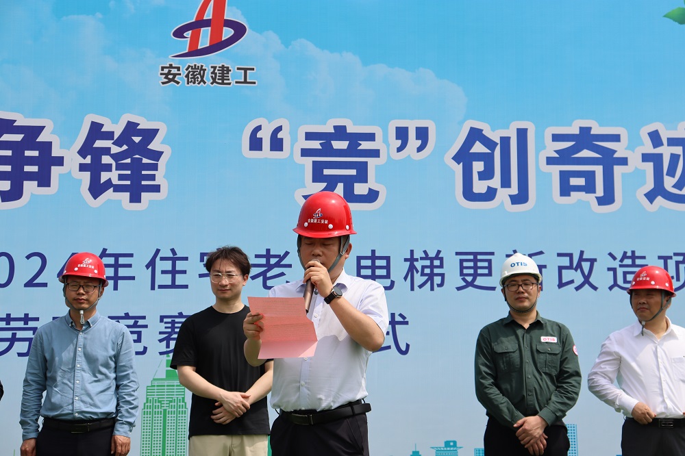 夏國祥強調,蚌埠2024年住宅老舊電梯更新改造項目作為蚌埠市重點(diǎn)民生工程意義重大、影響深遠。開(kāi)展此次勞動(dòng)競賽活動(dòng),就是要通過(guò)以競創(chuàng )優(yōu)、以賽促效的形式進(jìn)一步加快施工進(jìn)度,提升施工質(zhì)量,為全力保障工程建設總目標的順利實(shí)現打下堅實(shí)基礎。以高質(zhì)量項目建設成績(jì)來(lái)進(jìn)一步提升建工安裝在城市住宅老舊小區電梯更新改造領(lǐng)域的品牌影響力和技術(shù)硬實(shí)力。