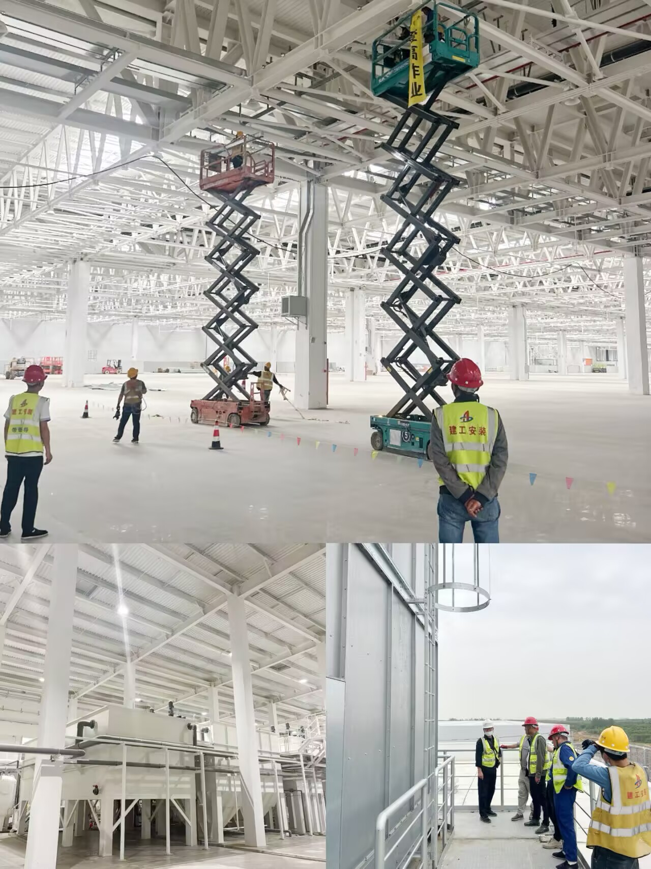 走進(jìn)項目施工現場(chǎng),銀灰色的鋼結構廠(chǎng)房在陽(yáng)光下熠熠生輝,長(cháng)達百米的標準化車(chē)間整齊排列,工業(yè)美學(xué)與實(shí)用功能完美融合?,F場(chǎng)管理人員正在監督支吊架整改安裝、冷卻塔設備避雷針安裝交底等,其中污水處理站安裝調試已完成,下一步全體人員將以高效率和高標準推動(dòng)項目順利通過(guò)竣工驗收。