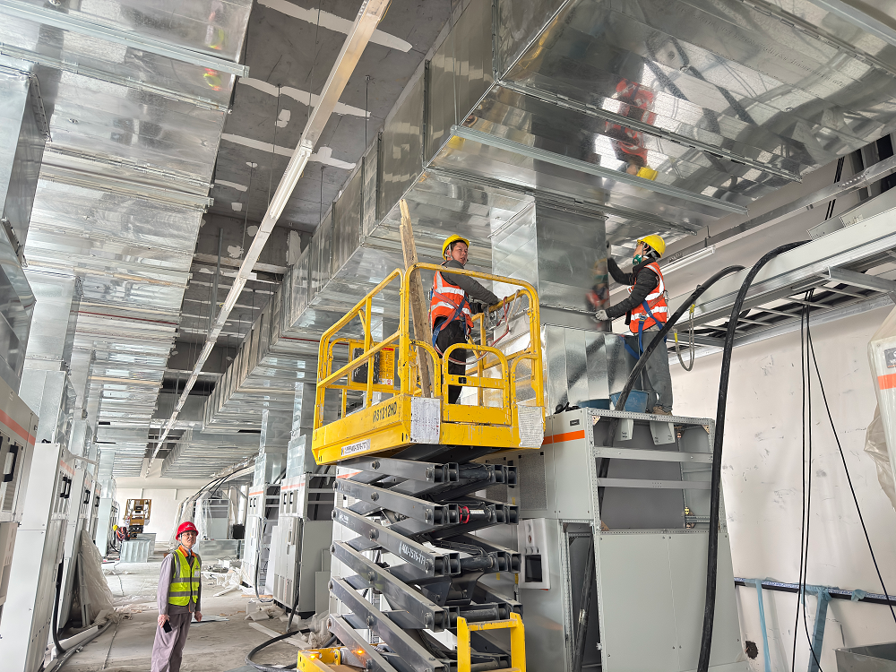 青海高原,氣候惡劣,環(huán)境艱苦,高寒缺氧,但這些困難并沒(méi)有阻擋項目部全體成員奮斗的步伐。施工現場(chǎng),機器轟鳴聲此起彼伏,工人們頭戴安全帽,身系安全繩,操作著(zhù)各種設備,熟練地進(jìn)行著(zhù)防水卷材敷設、吊頂板安裝、鋼筋綁扎、外墻抹灰、風(fēng)管安裝等作業(yè),每個(gè)環(huán)節都緊張有序,環(huán)環(huán)相扣。項目管理人員穿梭在各個(gè)施工點(diǎn),緊盯現場(chǎng)安全與質(zhì)量,及時(shí)協(xié)調解決施工中遇到的問(wèn)題,他們全身心地投入到工作中,用專(zhuān)業(yè)的素養和嚴謹的態(tài)度為項目建設保駕護航。