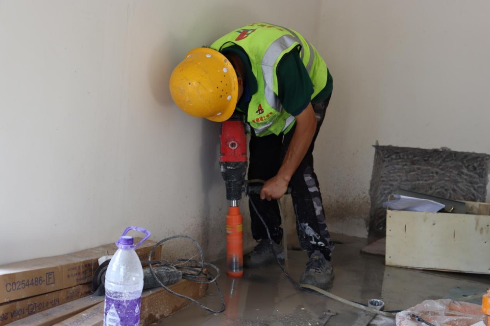 肥西縣城鄉一體化發(fā)展花崗項目施工人員正在對機房地面進(jìn)行孔洞開(kāi)鑿
